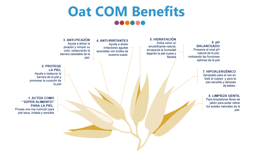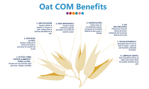 La avena coloidal Oat COM es ideal para piel y cuero cabelludo
